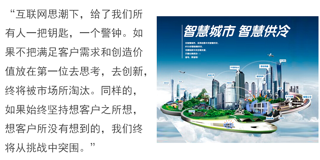 伴隨著互聯(lián)網(wǎng)理念的普及,那些靠中間環(huán)節(jié)獲取利潤的企業(yè)形態(tài)將難以持續(xù),現(xiàn)行中央空調(diào)行業(yè)以主機產(chǎn)品中心制多層級的生產(chǎn)與制造方式將被以實現(xiàn)用戶成本最低化和實際運行能效高化的服務(wù)型方式所取代,依靠信息不對稱建立的差異化優(yōu)勢將不復(fù)存在,中央空調(diào)行業(yè)以各種華麗的廣告及越來越超水平的產(chǎn)品性能描述,而不能體現(xiàn)在中央空調(diào)系統(tǒng)實際運行成本和節(jié)能水平的市場競爭方法已經(jīng)不被消費者認(rèn)可。
