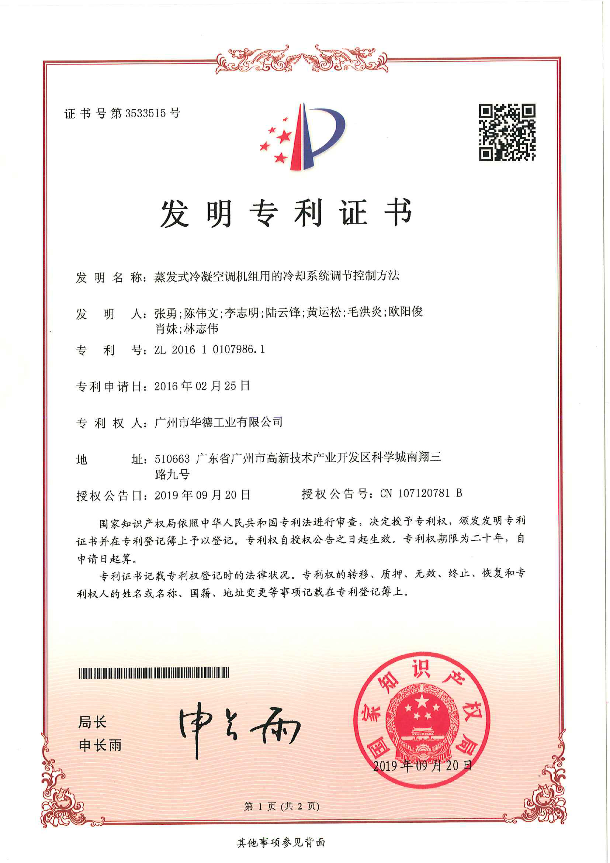蒸發(fā)式冷凝空調(diào)機(jī)組用的冷卻系統(tǒng)調(diào)節(jié)控制方法