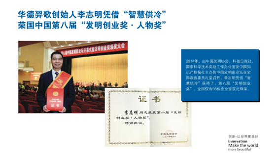 ▲2014年廣州華德創(chuàng)始人李志明先生憑借“智慧供冷”,在全國政協(xié)禮堂榮獲中國第八屆“發(fā)明創(chuàng)業(yè)獎·人物獎”。