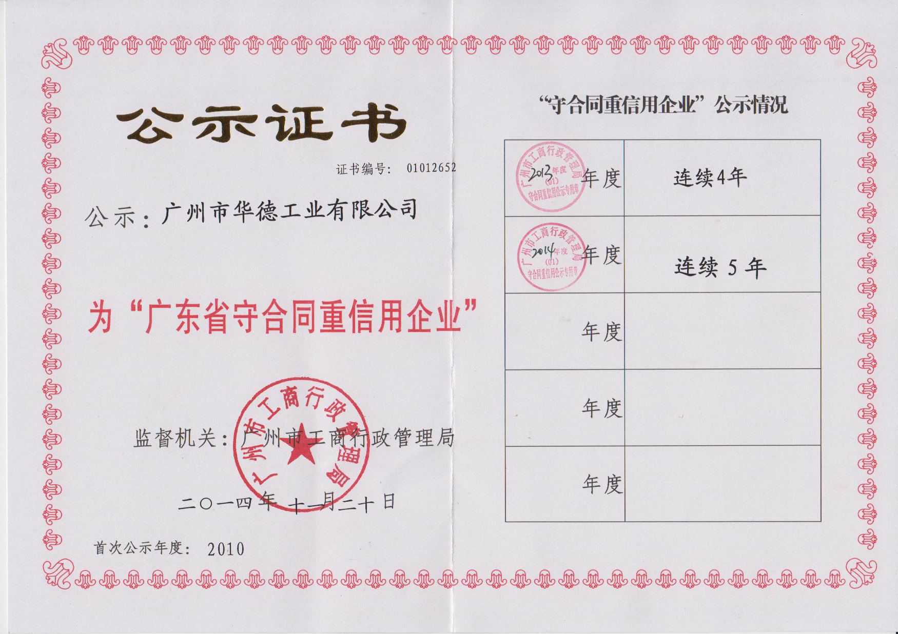 | 廣州華德蒸發(fā)冷空調(diào)連續(xù)5年榮獲“廣東省守合同重信用企業(yè)”稱號 |