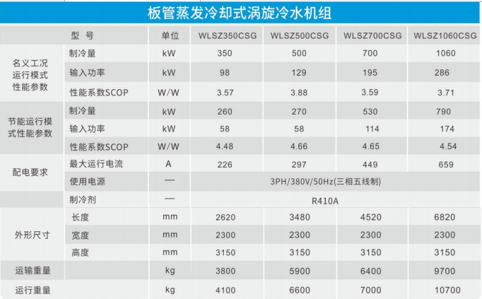 ![]() 立足創(chuàng)新,面向應(yīng)用,華德羿歌推出板管蒸發(fā)冷卻式雙模式渦旋冷水機(jī)組。產(chǎn)品設(shè)計(jì)適用于峰值負(fù)荷和部分負(fù)荷時(shí)常交替出現(xiàn)的運(yùn)行場(chǎng)所,或需要過(guò)渡季節(jié)運(yùn)行以及晚間低負(fù)荷運(yùn)行的場(chǎng)所,比如電影院、歌劇院、圖書館、博物館或地鐵、工廠等。 ![]() 產(chǎn)品參數(shù)